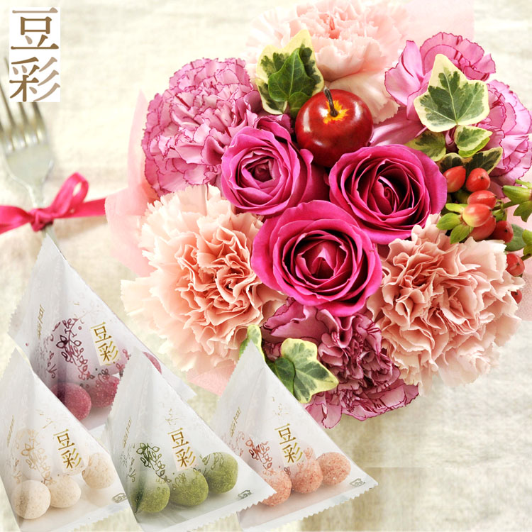 花とスイーツのセットフラワーケーキと 豆彩 テトラ豆菓子14袋セット 送料無料 北海道 九州 沖縄お届け不可 生花 花束 メッセージカード花瓶いらずの花束 花 プレゼント 贈り物 Fkaa Educaps Com Br